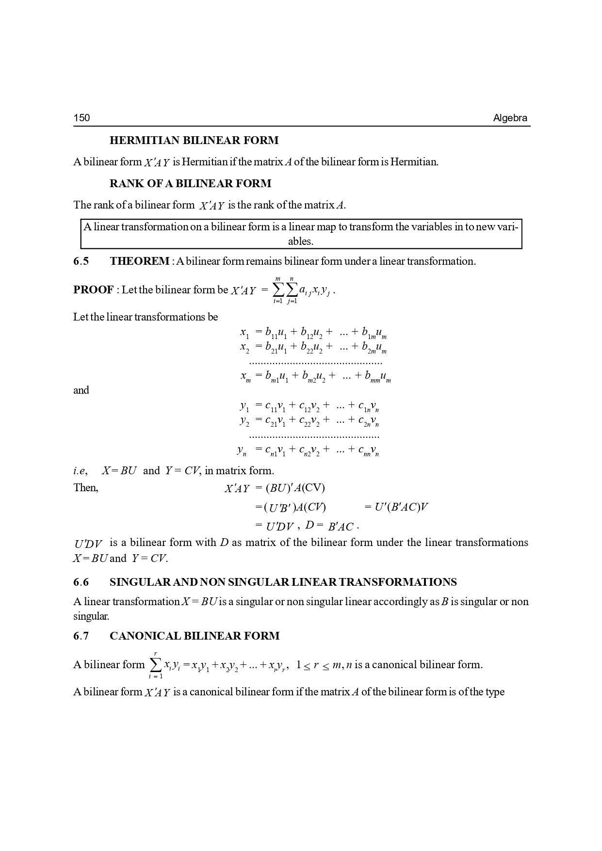 BILINEAR AND QUADRATIC FORMS | Algebra B.sc Sem – 1